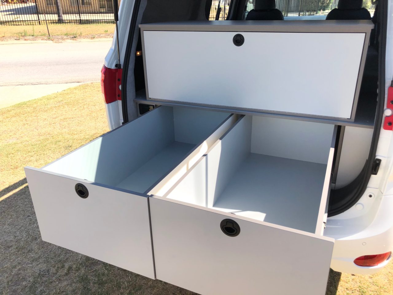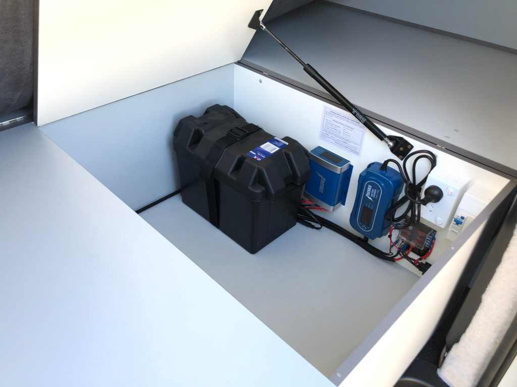 Two 12V outlets (one inside the van and one in the rear) allow you to bring along your favourite 12V camping appliances and use them wherever suits best. USB ports inside the van next to the bed make for easy phone charging overnight and dual sliding windows allows for the cool Australian breeze to enter the vehicle.