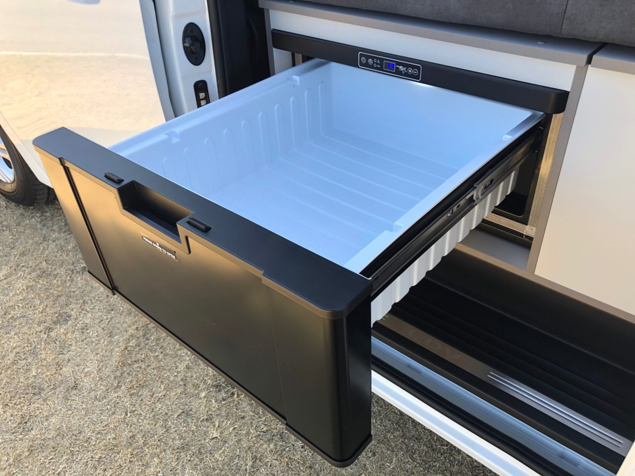 In the rear you’ll find a full size double bed with high density foam mattress to enjoy a comfortable nights rest night after night. Storage space has been maximised with several clever storage compartments. Enjoy fresh, chilled food and drinks from the 40L drawer fridge on board.